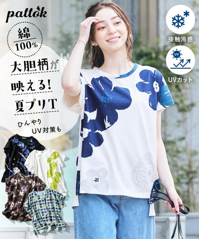 ぱっと着るだけでサマになる、楽ちん可愛いTシャツ。綿100%なのにひんやり、日焼け対策もOK!暑さに負けない夏のTシャツです。等身大のあなたがもっと素敵になる魔法の一枚、見つけませんか ■デザイン 一枚で着映えする存在感のあるデザインTシャツ。気になる体型をふんわりカバーしてくれる、優秀アイテムです。フレンチスリーブが二の腕をさりげなくカバーし、ゆったりとしたシルエットが体のラインを拾わず、リラックスした着心地。 豊富なデザインバリエーション×柄から、あなたらしい一枚を見つけてください。カジュアルな柄から、大人っぽい柄まで、様々なシーンで活躍すること間違いなし。 ■素材 綿100%の優しい肌触りで、汗ばむ季節も快適に過ごせます。接触冷感機能付きで、着るたびにひんやりとした清涼感。さらに、UVカット機能もプラスされているので、日焼け対策もバッチリ。お洗濯も簡単で、毎日着たくなる心地よさです。 ■おすすめのスタイリング デニムと合わせてカジュアルに、フレアスカートと合わせてフェミニンに。ぱっと目を引くプリントTシャツだから、シンプルなボトムスと合わせるだけで、コーディネートが完成します。アクセサリーや小物でアクセントを加えれば、さ