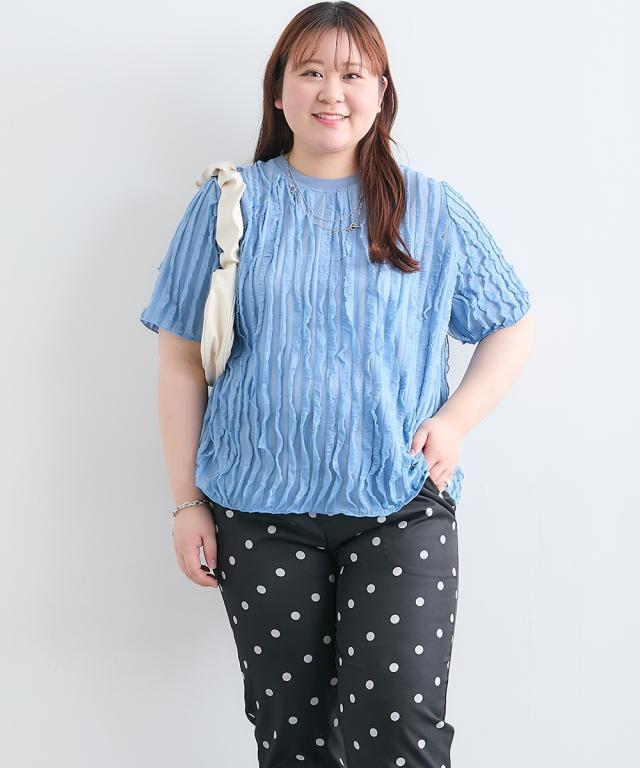 Tシャツ カットソー 大きいサイズ レディース タックフリル プルオーバー 有 夏 | 4L/5L/6L | ニッセン nissen