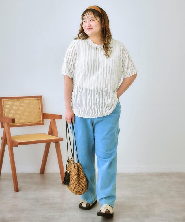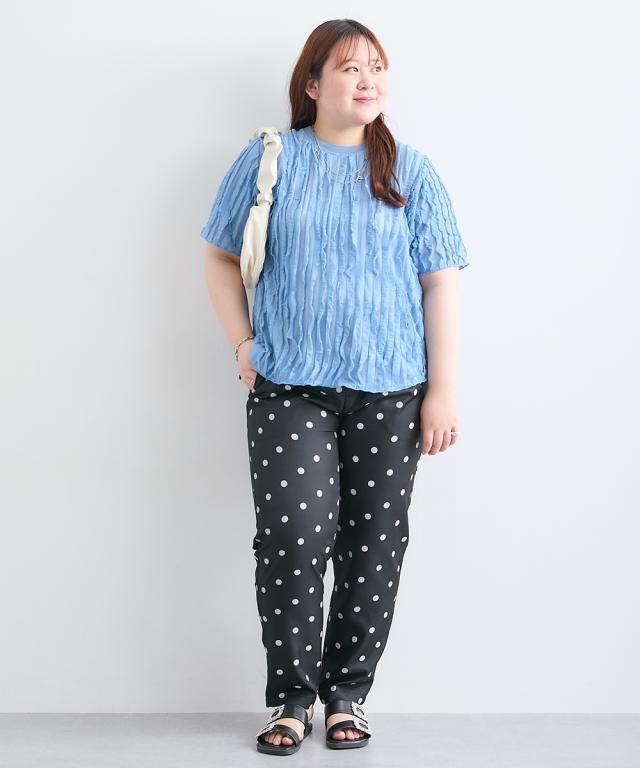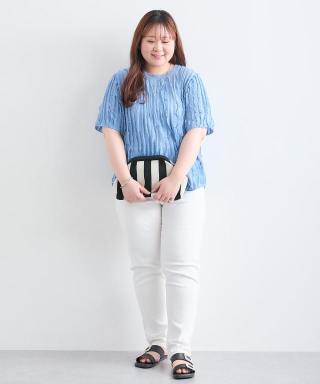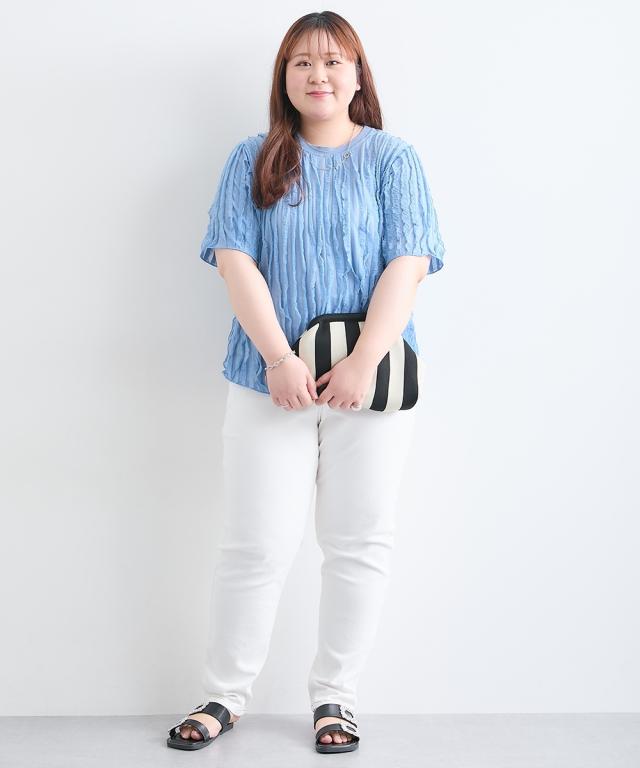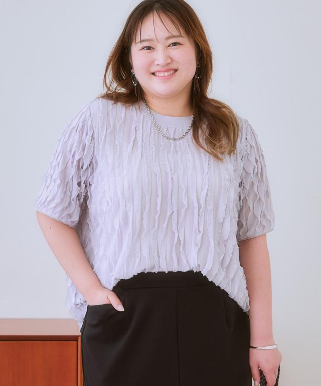 フリフリなびくフリルが印象的なトップス。■デザイン シンプルなクルーネックに細かく入ったフリルがとても印象的です。 ■素材 柔らかくて薄手のカットソーにフリルが楯になびくように入っています。 ■おすすめのスタイリング 夏のカジュアルスタイルをアップデート。ふんわりとしたシルエットと、特徴的な生地感が、 シンプルながらも洗練された印象を与えます。白いパンツと合わせて、爽やかな大人カジュアルを楽しんだり、 デニムと合わせて、こなれ感のあるデイリースタイルを楽しんだり。様々なボトムスとの相性も抜群で、 着回し力も 。この夏、ワードローブに加えて、自分らしい着こなしを楽しんでみませんか