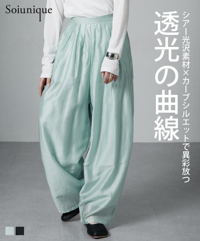 ワイドパンツ レディース 光沢素材シアーカーブ パンツ Soiunique 夏 ゆったり 体型カバー 美脚 ボトムス ズボン | M/L/LL | ニッセン nissen