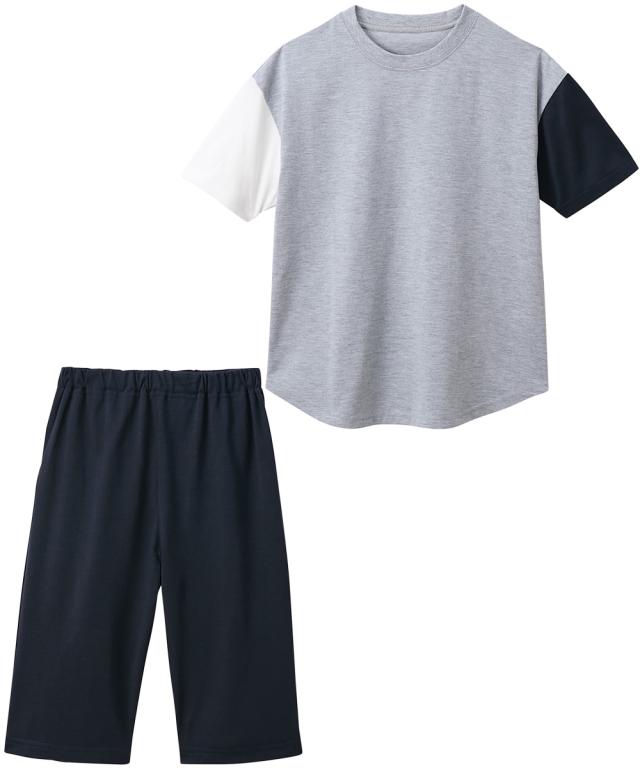 天竺袖配色バックプリント半袖ルームウェア パジャマ(男の子 女の子)