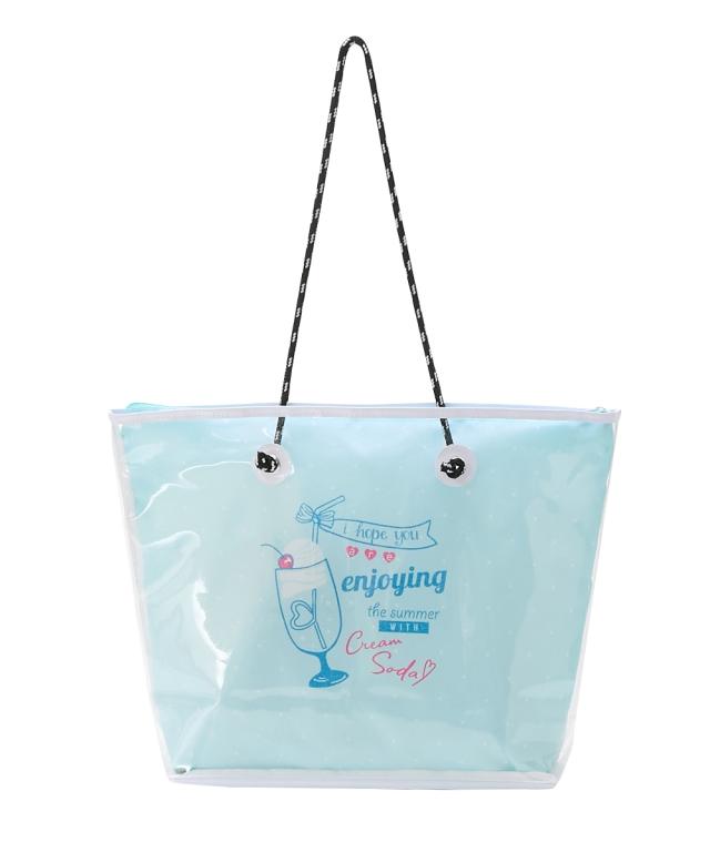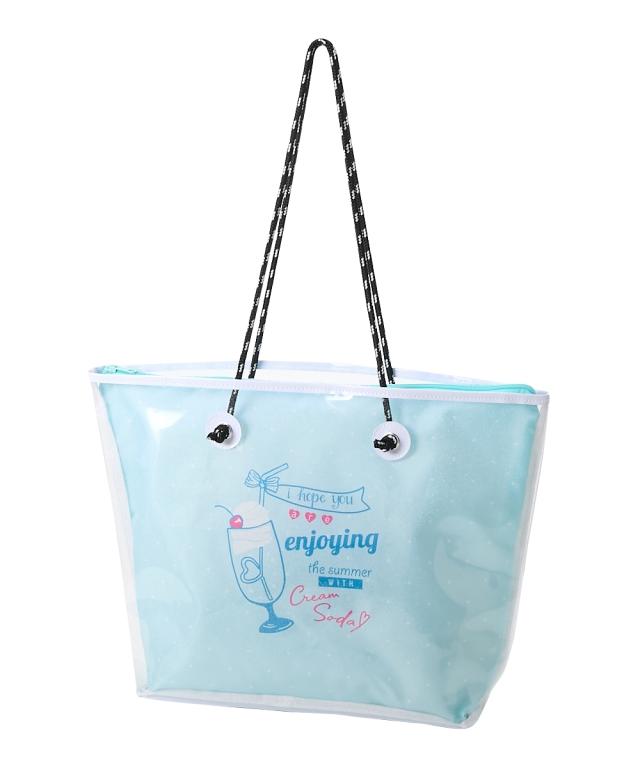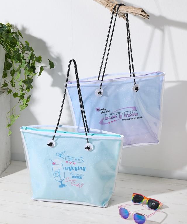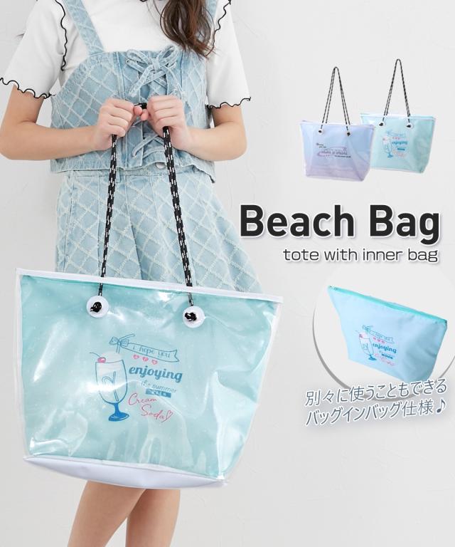 夏らしいさわやかなカラーのビーチバッグ☆ 少し大きめのトートバッグだからたっぷり入ってカジュアルコーデにもぴったり☆ ■デザイン ・たくさん荷物が入る少し大きめのトートバッグ型 ・インナーバッグと別々に使うのもOK ・幅広いレジャーで活躍 ■素材 ・濡れても安心PVC素材(本体) ・軽くて持ち運びしやすいポリエステル素材(インナーバッグ)
