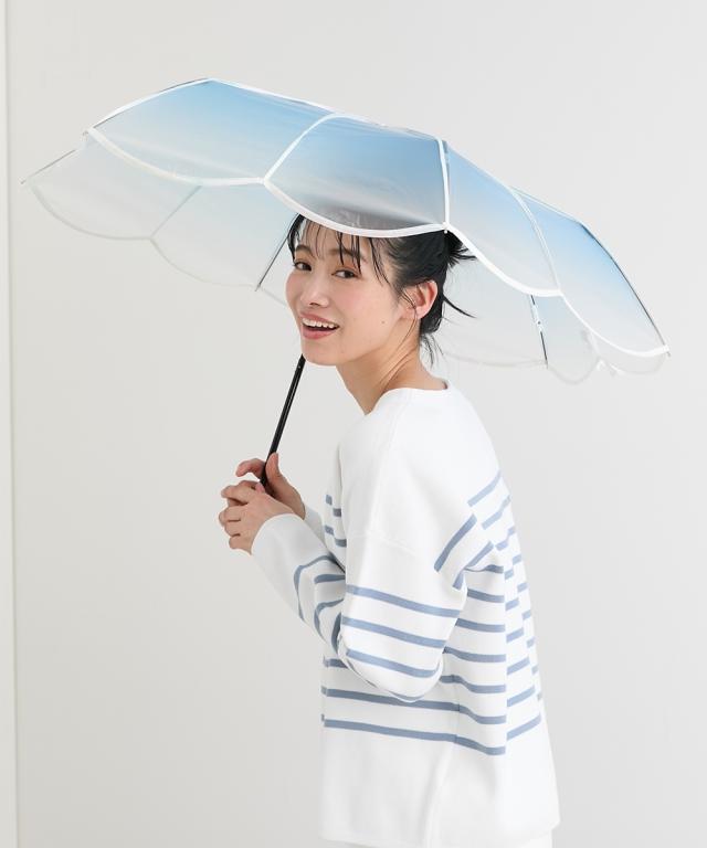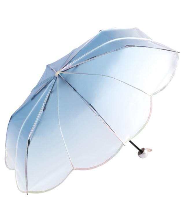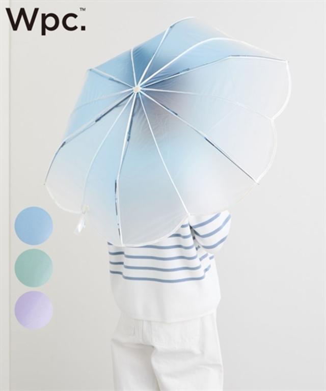 きれいなグラデーションで雨の日を楽しく。Wpc.の折りたたみビニール傘です。 ビニールなのでしっかり雨を防いてくれて、半透明ならではの美しいカラーが特徴的。 ついつい憂鬱になってしまいがちな雨の日に彩をさしてみませんか ■デザイン 外側から見た時のカラーがとってもきれいなカラー。 生地端もオーロラのパイピングを巻いており、持ち手もパール調のきれいなお色で どこを見てもテンションの上がるデザインです。
