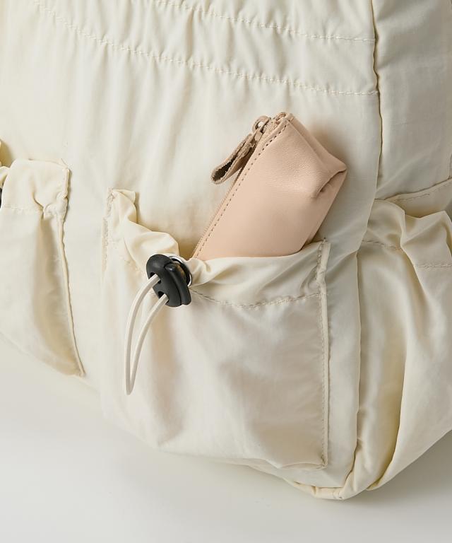 材質:[表地]ナイロン100% [裏地]ポリエステル100% ※柄の出方が多少異なる場合があります 生地の厚み:やや薄い 容量:約15L サイズ:M:約高さ30×幅23×奥行12cm L:約高さ35×幅26×奥行13cm ポケット:外側オープンポケット4 内側オープンポケット1 肩ひも:調節可 開閉:ファスナー仕様 原産国:中国製 備考:洗濯不可