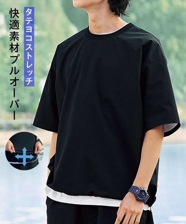 Tシャツ カットソー メンズ セットアップ 可能 タテヨコ ストレッチ 裾ドローコード プルオーバー 有 夏 ビッグ ラージ トップス | 3L〜10L | ニッセン nissen