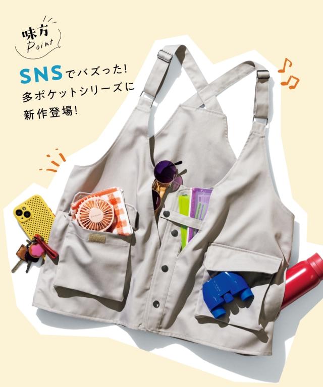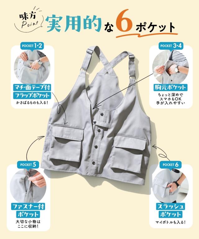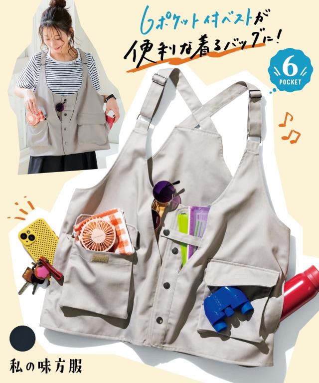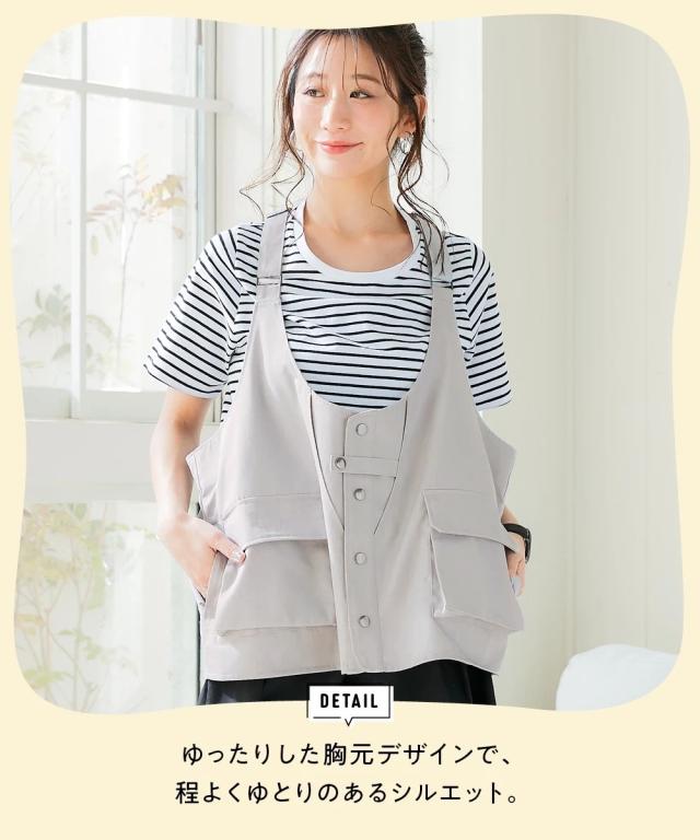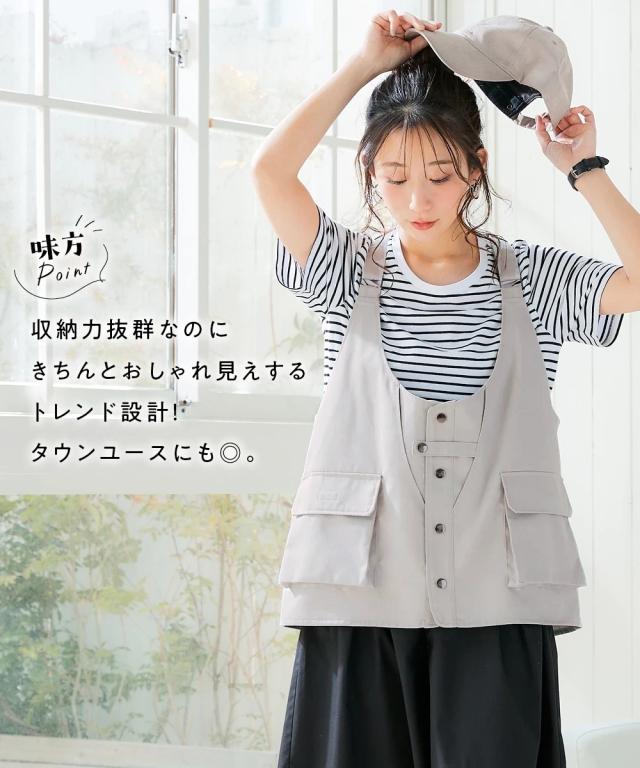 なにげない毎日をさりげなく幸せにしてくれる、そんな「頼れる味方」になってくれる「私の味方服」から、多ポケットの新作です。「いつもの毎日」をもっと快適に、もっとアクティブに!ハンズフリーで軽快にお出かけできる、多ポケット軽量ベスト。まるで着るバッグ!必要なものを全部詰め込んで、身軽に街へ繰り出そう。普段使いはもちろん、旅行やアウトドアにも最適。あなたの「普段の日」を、もっと楽しく、もっと自由に彩ります。 ■デザイン 普段使いに最適な多ポケット軽量ベスト。 合計6つのポケットで、スマホ、鍵、小物など必要なものを収納可能だから、羽織るだけで便利な「着るバッグ」に! アウトドア、フェス、旅行、普段使いなど、様々なシーンで活躍します。 体型を気にせず、ゆったりと着られるシルエットで、気になる部分をふんわりカバー。フロントには、スマホやパスケースなど、すぐに取り出したいものを入れるのに便利な胸元ポケット。さらに、鍵や小物を安心して収納できるファスナー付きポケット、マチ付きで収納力抜群のフラップポケット、マイボトルもすっぽり収まるスラッシュポケットなど、合計6つのポケットを搭載。機能性とデザイン性を兼ね備えた、優秀アイテムです。