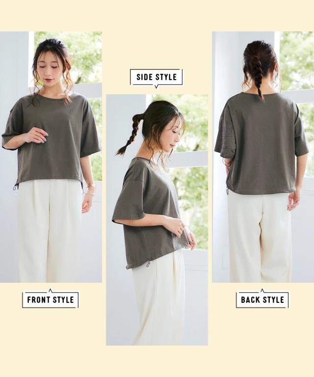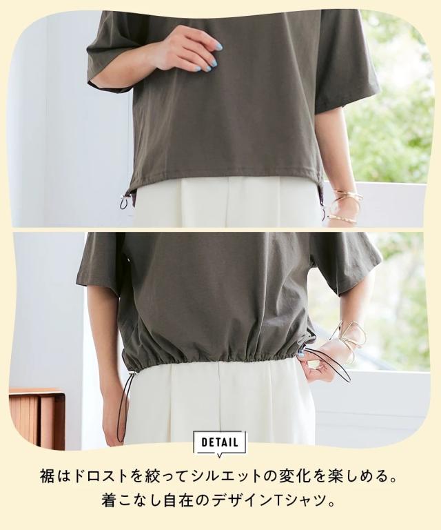 いつもの日常に、ちょっとした幸せをプラス。綿100%の優しい肌触りと、こだわりのデザインで、あなたの毎日を心地よく彩るTシャツ。楽ちん、可愛い、そして毎日着たくなる。そんな欲張りな願いを叶える、とっておきの一枚です。 ■デザイン ゆったりとした身幅と、程よいミディアム丈が、気になる体型をふんわりカバー。裾のドロストを絞れば、シルエットの変化を楽しめます。カジュアルながらも、どこかこなれた印象を与えるデザインは、大人の女性にぴったり。シンプルながらも、さりげない個性が光る一枚です。首元はベーシックなクルーネックで、様々なアクセサリーとの相性も抜群。カジュアルからきれいめまで、幅広いスタイルにマッチします。 ■素材 汗を早く吸ってくれる綿100%の天竺素材を使用。毎日着るものだからこそ、素材にもこだわりたい。そんなあなたにおすすめです。 ■おすすめのスタイリング カジュアルなデニムやチノパンと合わせて、リラックス感のある大人カジュアルスタイルに。スカートと合わせて、フェミニンな着こなしも楽しめます。足元はスニーカーやサンダルで軽快に。アクセサリーでアクセントを加えれば、より洗練された印象に。一枚で着るのはもちろん、シャツや