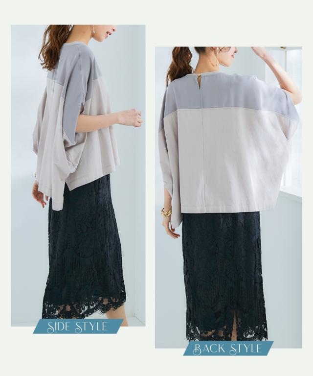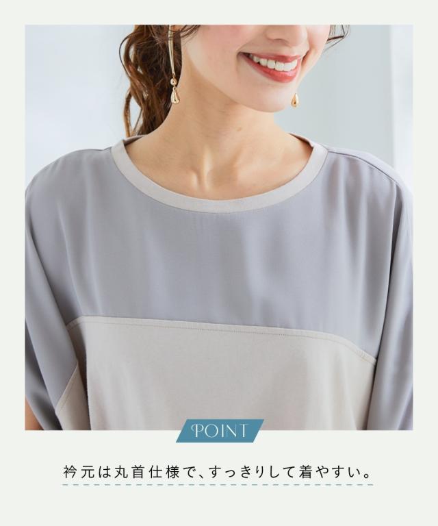Tシャツ カットソー 大きいサイズ レディース 異素材切替ボックスシルエット トップス 夏 | 8L/10L | ニッセン nissen