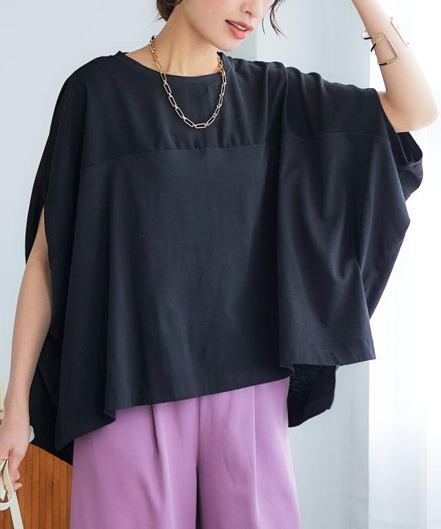 朝の支度が即完了!着るだけでサマになる、異素材切替デザイントップス。気になる体型もふんわりカバーして、楽なのに上品見え。ゆったりラクチンがいいけれど、おしゃれを楽しみたいあなたにぴったりの、等身大の美しさを引き出す一枚です。 ■デザイン ゆったりとしたボックスシルエットが、気になるお腹周りや腰回りをふんわりとカバー。異素材の切替デザインが、シンプルながらも洗練された印象を与え、着るだけでおしゃれ度がアップします。袖口のスリットが抜け感をプラスし、重くなりがちな印象を回避。体型カバーとデザイン性を両立した、優秀トップスです。程よい丈感で、ボトムスを選ばないのも嬉しいポイント。カジュアルにもきれいめにも着こなせる、着回し力抜群のアイテムです。 ■素材 本体は綿とポリエステルの混紡素材を使用。綿の優しい肌触りと、ポリエステルの扱いやすさを兼ね備えています。さらりとした質感で、汗ばむ季節も快適に過ごせるのが魅力。お洗濯後の乾きも早く、お手入れも簡単です。毎日着るものだからこそ、素材にもこだわりました。 ■おすすめのスタイリング カジュアルに着こなすなら、デニムやチノパンと合わせて。足元はスニーカーやサンダルで軽快に。き