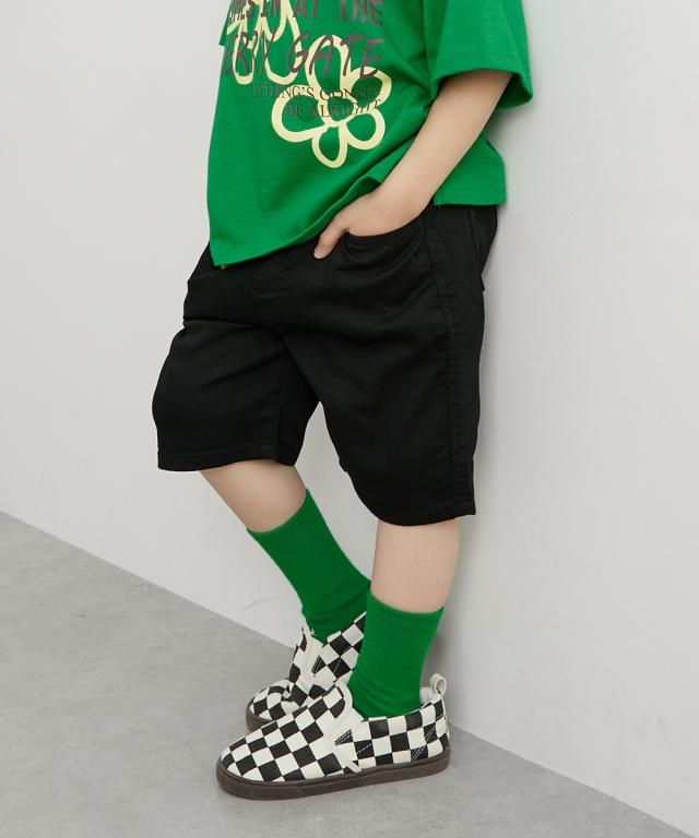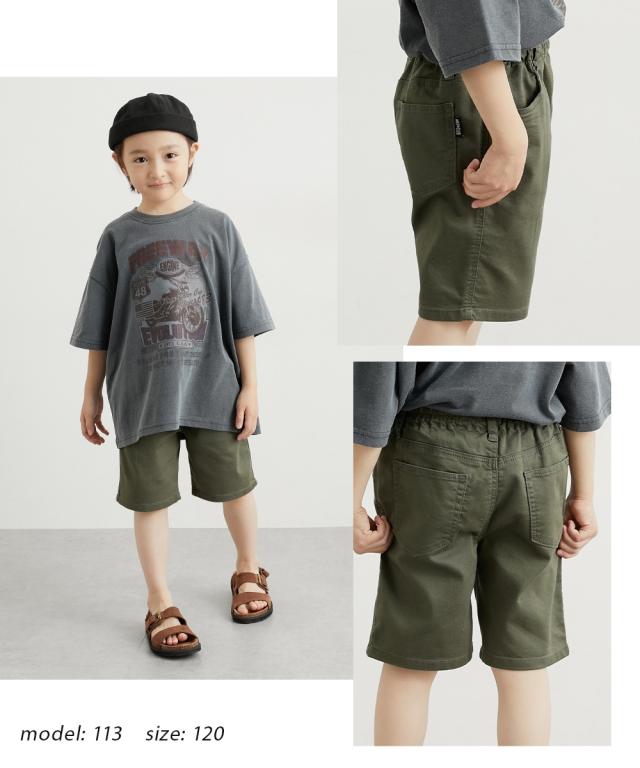 動きやすさ抜群!毎日履きたいストレッチツイル総ゴムハーフパンツ ■デザイン ・ 定番のブラック、カーキ、ベージュの3色展開。どんなトップスにも合わせやすく、着回し力抜群です。男の子にも女の子にも似合うユニセックスデザイン。 ・ ウエストは総ゴムで締め付け感がなく、お子様自身で脱ぎ着しやすいのが嬉しいポイント。お腹周りも楽ちんです。 ・丈夫なツイル素材で、公園遊びや外遊びにもぴったり。洗濯にも強く、デイリー使いに最適です。 ・両サイドとバックにポケットが付いているので、ハンカチやティッシュ、小さなおもちゃなどを入れるのに便利です。 ■素材 ・ぐーんと伸びるストレッチツイル素材を使用。しゃがんだり走ったり、どんな動きも妨げません。活発なお子様も一日中快適に過ごせます。 ■おすすめのスタイリング ・シンプルなTシャツやプリントTシャツと合わせてカジュアルに。 ・ポロシャツと合わせて少しきれいめな着こなしも。 ・ブラウスやチュニックと合わせてガーリーに。 ・サンダルやスニーカー、バレエシューズなど足元で雰囲気を変えられます。