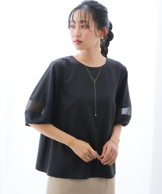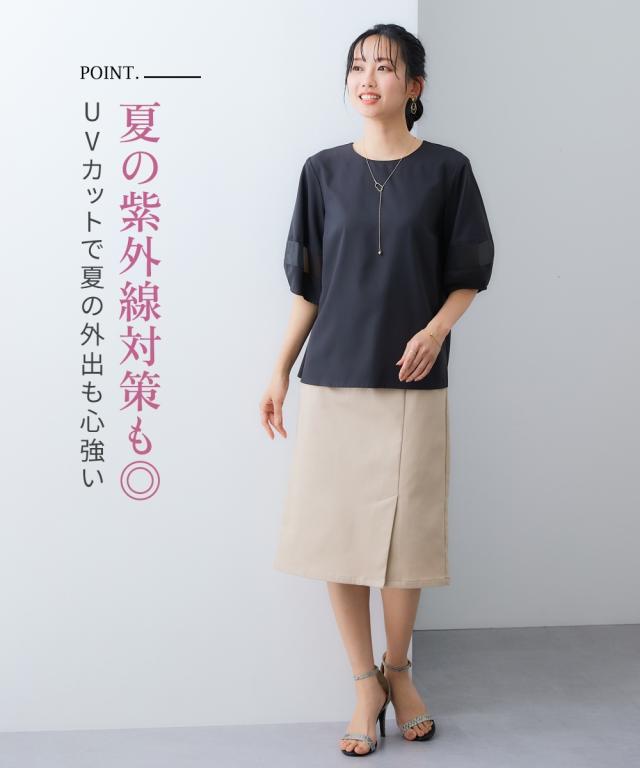 シャツ ブラウス レディース シアー切替ラン タンス リーブ イージーケア 透けにくい ストレッチ 素材 UVカット 夏 | S/M | ニッセン nissen