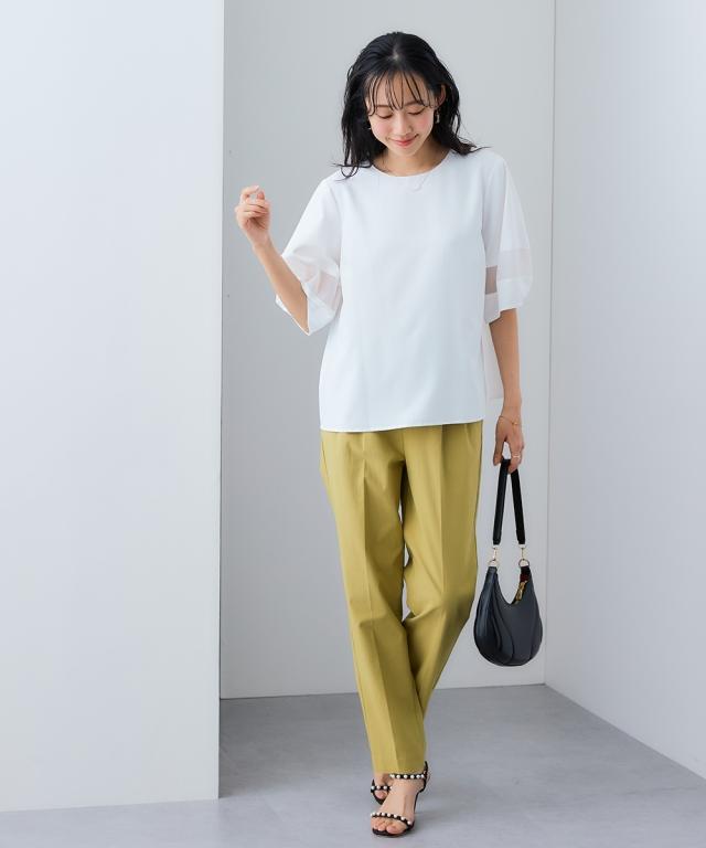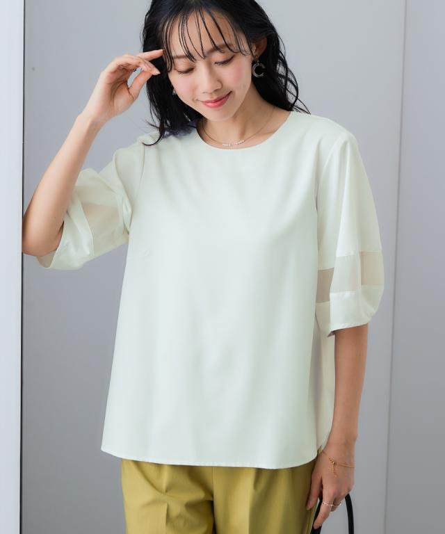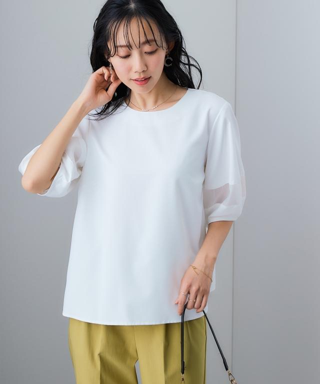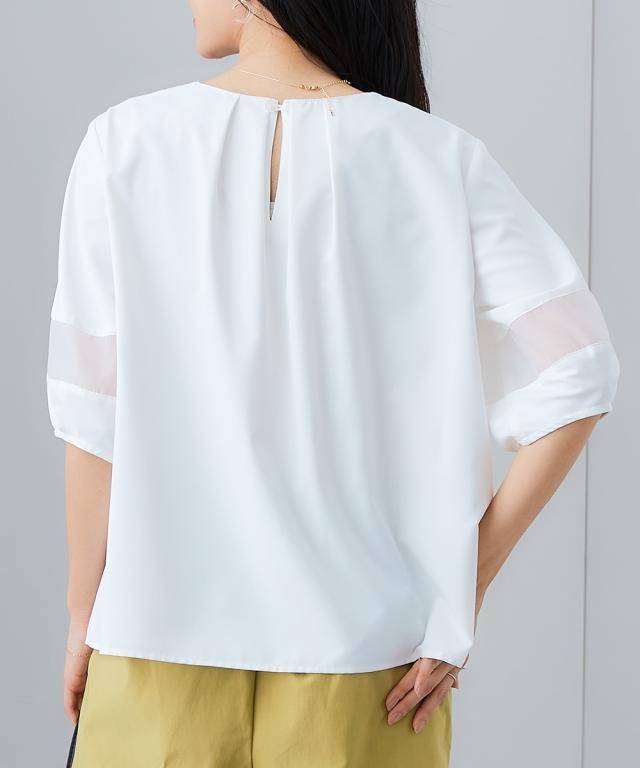 - シアー切り替えが入っているランタンスリーブが可愛いです。白で薄手なのに、不思議と透けません。もう少し厚みがある素材でも良かったかもと思いました。