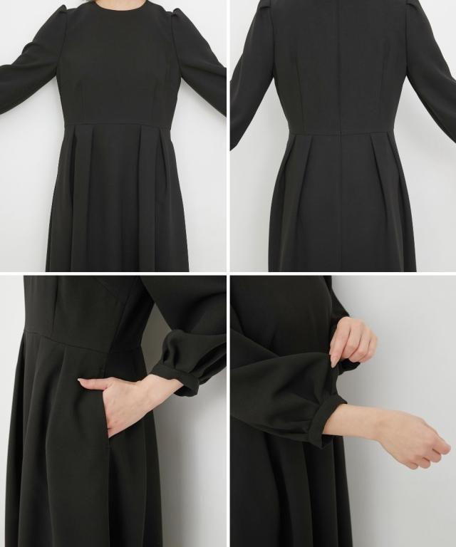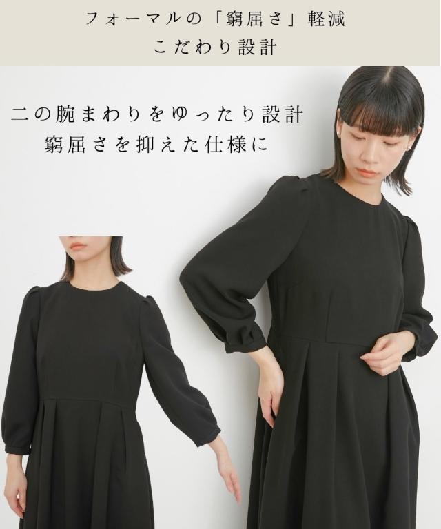 【Neina(ネイナ)】〜for Black Formal〜 『自分らしく丁寧に大切な日を装う。』 大切な日だからこそ、自分らしい装いを持って、丁寧に感謝で送りたい <自分らしく丁寧な装いを大切にする方へ> 縛られたカタチではなく、「想い」が人と人をつなぐ シーンにもテイストにも年齢にも縛られない自由な着こなしを実現する新しいブラックフォーマル。 こだわりポイント 袖幅をゆったりとした仕様にしたこだわりのワンピース 袖部分の窮屈さのお悩みを解消するために、シルエットはそのままに、少しゆとりを持たせたこだわり仕様 ウエスト部分にタックを入れることで、ふんわりフレアシルエットに 膝が隠れる丈感にこだわり、幅広い年齢の方に着用いただけます 小物収納できる便利なポケット付き シンプルながら、実用性と可愛い要素を備えたワンピースです ブラックフォーマル生地(漆黒)を使用、きちんと感のある装いに 防しわ生地なので、しわになりにくい 洗濯機(ネット使用)で洗えるので、お手入れ楽チン!ご家庭でお手入れができます 喪服としてだけでなく、結婚式・参観日・卒業式などすべてのフォーマルシーンに対応できるワンピースです 体型カバーポイント 綺麗なシルエットで体型カバー