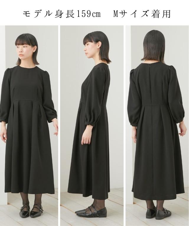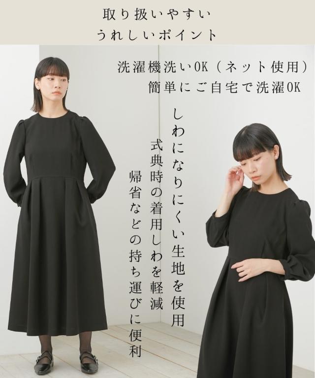 喪服 礼服 ブラックフォーマル レディース 日本製生地使用 洗える防しわ ウエスト タック デザイン ワンピース 有 〔Neina〕 春 夏 秋 冬 ニッセン nissen