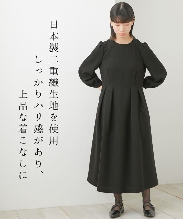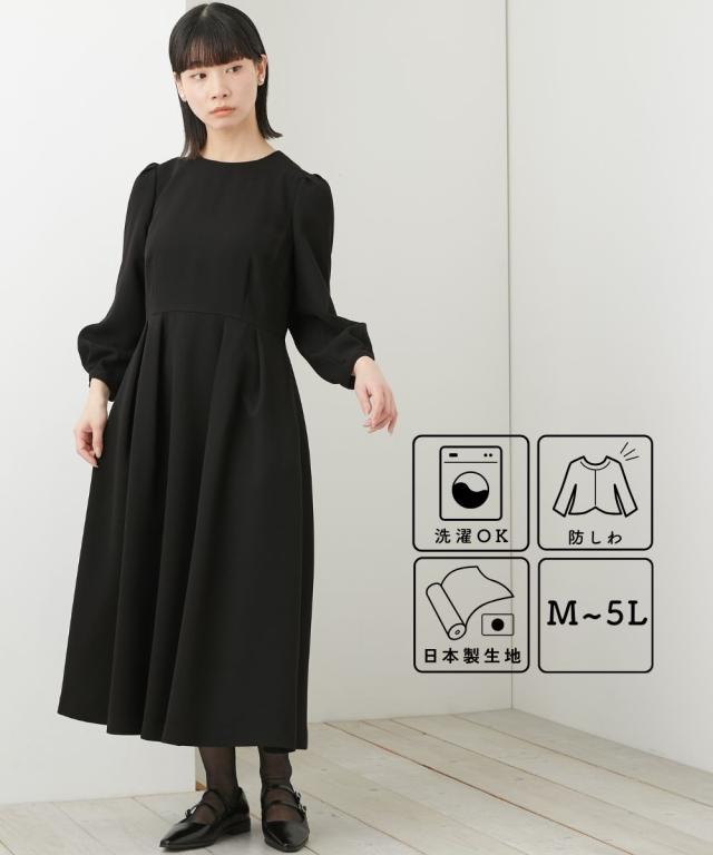 喪服 礼服 ブラックフォーマル 大きいサイズ レディース 日本製生地使用 洗える防しわ ウエスト タック デザイン ワンピース 有 〔Neina〕 ニッセン nissen