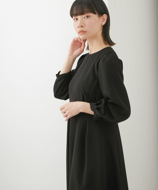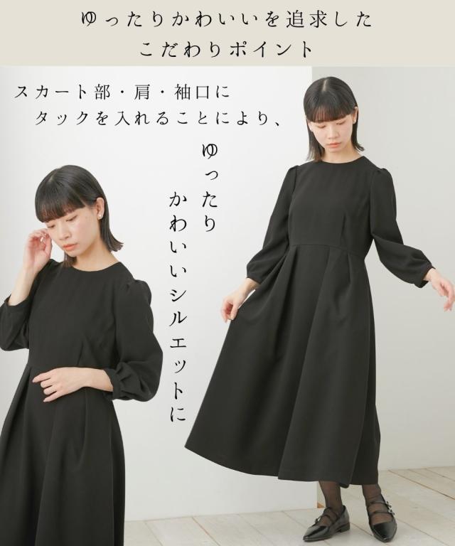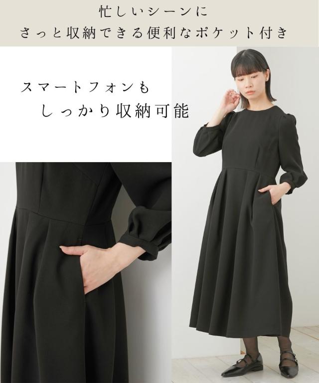【Neina(ネイナ)】〜for Black Formal〜 『自分らしく丁寧に大切な日を装う。』 大切な日だからこそ、自分らしい装いを持って、丁寧に感謝で送りたい <自分らしく丁寧な装いを大切にする方へ> 縛られたカタチではなく、「想い」が人と人をつなぐ シーンにもテイストにも年齢にも縛られない自由な着こなしを実現する新しいブラックフォーマル。 こだわりポイント 袖幅をゆったりとした仕様にしたこだわりのワンピース 袖部分の窮屈さのお悩みを解消するために、シルエットはそのままに、少しゆとりを持たせたこだわり仕様 ウエスト部分にタックを入れることで、ふんわりフレアシルエットに 膝が隠れる丈感にこだわり、幅広い年齢の方に着用いただけます 小物収納できる便利なポケット付き シンプルながら、実用性と可愛い要素を備えたワンピースです ブラックフォーマル生地(漆黒)を使用、きちんと感のある装いに 防しわ生地なので、しわになりにくい 洗濯機(ネット使用)で洗えるので、お手入れ楽チン!ご家庭でお手入れができます 喪服としてだけでなく、結婚式・参観日・卒業式などすべてのフォーマルシーンに対応できるワンピースです 体型カバーポイント 綺麗なシルエットで体型カバー