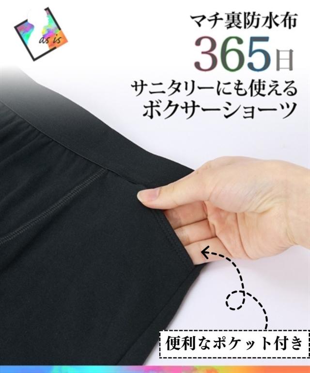 人気のサニタリーにポケット付きができました!巷にあるサニタリーショーツはほとんどが、かわいいデザインやレース付き、そんなことありませんかもっとシンプルですっきりしたデザインがあってもいいのではすべてのお客様に喜んでいただきたい!そんな思いでつくられた【FTM】【365日使える】綿混ストレッチFTMポケット付きボクサーサニタリーショーツの表生地は綿95%でやさしい肌ざわり、マチ部分はナプキンを挟み込める仕様に。肌にあたる側は綿100%素材だからボクサーショーツとしてもはいていただけます〜POINT〜・着心地快適身生地は綿混素材で適度なストレッチ感があり優しい肌ざわり!・サニタリーにもショーツにも、マチ部分の仕様によりサニタリーにもショーツにも365日、年中着用していただける便利なサニタリーショーツです。・パターンにもこだわりましたメンズの商品に長年携わっていたパタンナー(型紙制作者)に雰囲気を壊さず着用感よく仕上げてもらいました。・お客様の声から便利なポケットを付けました!今までない便利なサニタリーショーツを是非お試しください!【ポケット寸法】ポケット口7.5cmポケット深さ15cm浅18.5cm深ポケット幅10.5cm