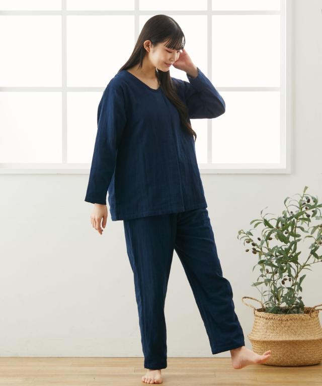 パジャマ 上下セット レディース 3重ガーゼ綿100% ルームウェア 春 秋 冬 セットアップ 部屋着 女性 | LL/3L/4L | ニッセン nissen