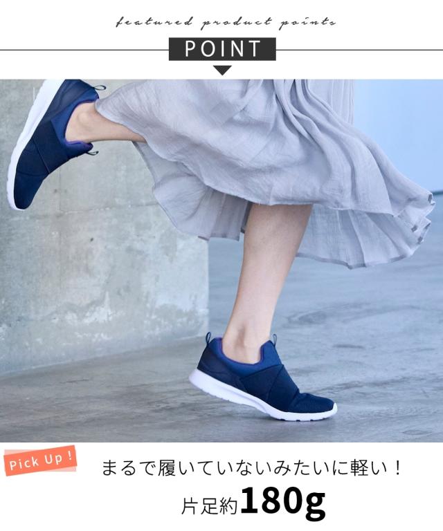 超軽量スニーカーから人気のスリッポンタイプが登場!脱ぎ履きがラクチンなスリッポンデザインもクロスゴムでしっかりフィット。 ■ポイント ・つま先は通気性が良く蒸れにくい粗めのメッシュ素材 ・履き口はふかふかクッションで癒される足当たり ・甲部分のライニングは足当たり快適なすべすべのメッシュ、中敷は足が前滑りしにくい粗めのメッシュ使用と内側もしっかりとしたこだわり ・中敷は厚みのあるふわふわクッションで気持ちいい ・屈曲性に優れているから歩行も快適 【ニッセンオリジナルの大きいサイズ規格】 本当に合う靴に出会った事はありますか ニッセンの4Eは、靴底の幅を広げ、甲や足首周りもゆったりの独自設計。 靴のサイズにお悩みのお客様へ向けて、サイズが大きくてもバランス良くきれいに見えるよう企画したオリジナルシューズです。