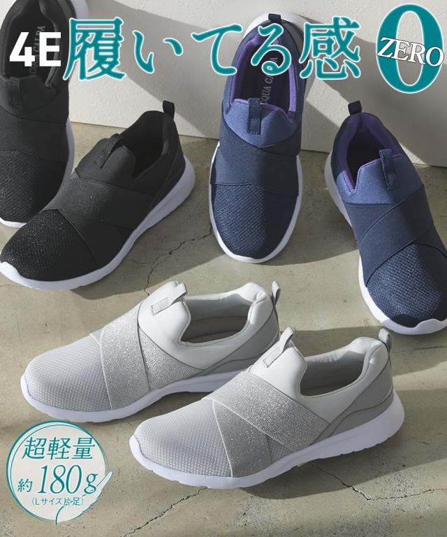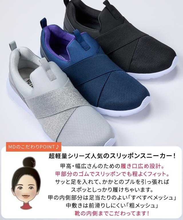 【ゆったり幅広】超軽量クロスゴムスリッポンスニーカー(ワイズ4E)