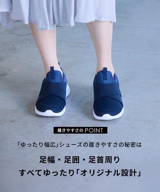 大きいサイズ レディース ゆったり幅広 超軽量クロスゴム スリッポン スニーカー ワイズ4E 春 夏 秋 冬 靴 シューズ | 25.0〜25.5cm | ニッセン nissen