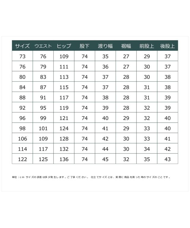 品質:綿100% 前ファスナー この商品はウエストゴムによる伸び縮みができません。製品洗いのため、色の出方・仕上がりサイズが多少異なる場合があります。 透け感:なし 伸縮性:なし 生地の厚み:厚い 光沢感:なし 裏地:なし ポケット:あり(前2つ・後ろ2つ・コインポケット1つ) 季節:オールシーズン向き シルエット:ゆったり 原産国:中国製 備考:洗濯機OK ※単位:cm ※サイズの誤差は多少発生します。ご了承ください。 ※仕立てサイズとは、実際に商品を測った時のサイズのことです。