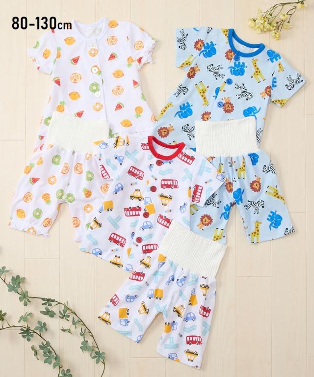 綿100% 梨地天竺前開き腹巻付きパジャマ(男の子 女の子)
