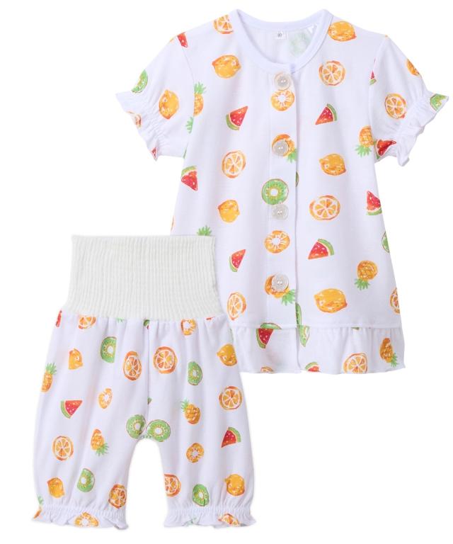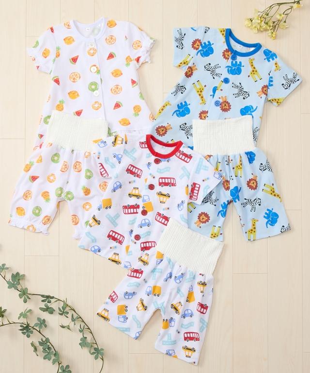 冷房や夜中の冷え防止におすすめ 腹巻付きパジャマならおなかや背中が出にくいので安心 ■デザイン ・子供たちに人気の柄 ・大きめボタンがお着がえをしやすくサポート ・はらまき付きでおなかも安心 ・フルーツ柄はフリルでラブリーに ■素材 ・本体はさらっとした肌ざわりが気持ちいいい 綿100%梨地天竺素材 ・腹巻部分はやさしく伸縮するポリエステル中心の綿混素材