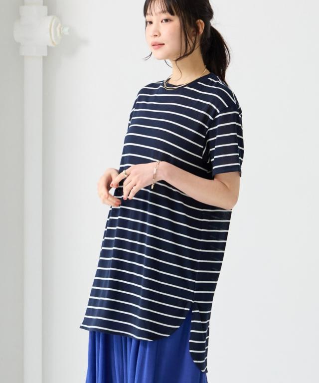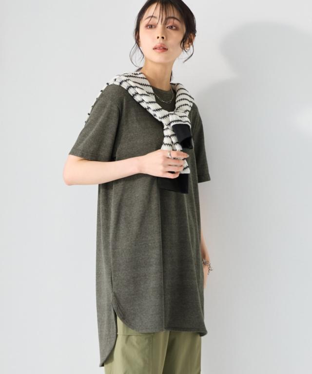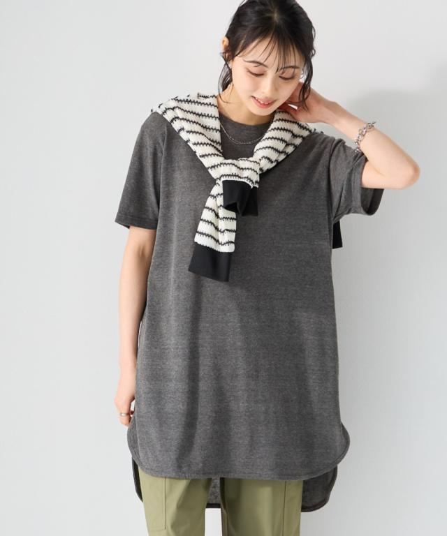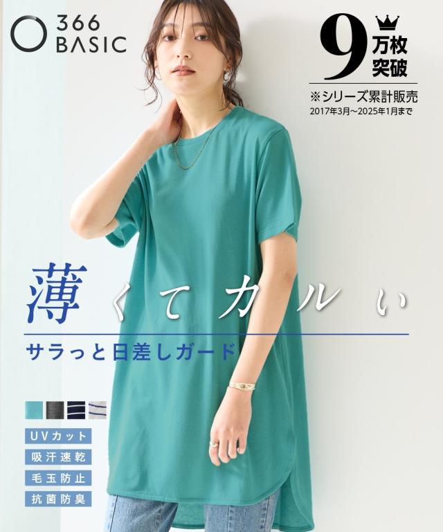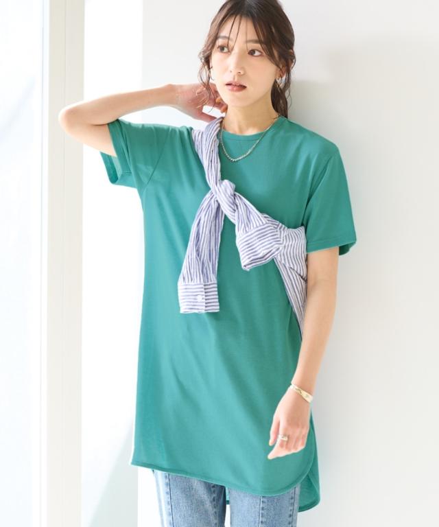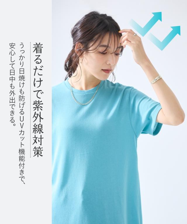 綿混うすカルゆるシルエット裾ラウンドチュニック(UVカット・吸汗速乾・抗菌防臭・毛玉防止)