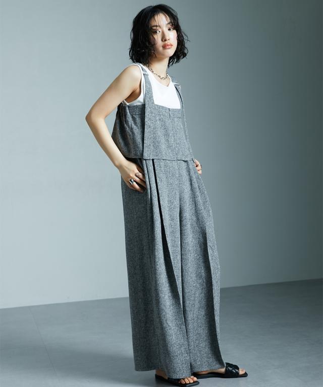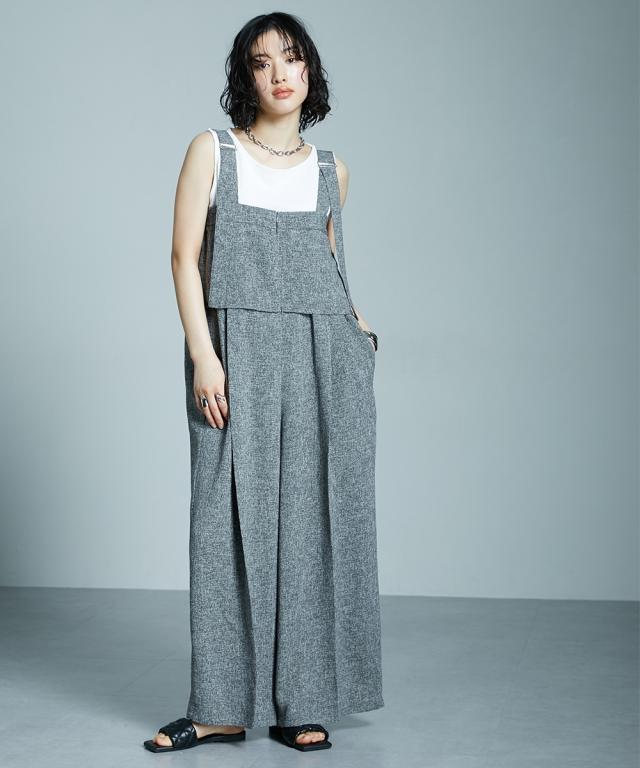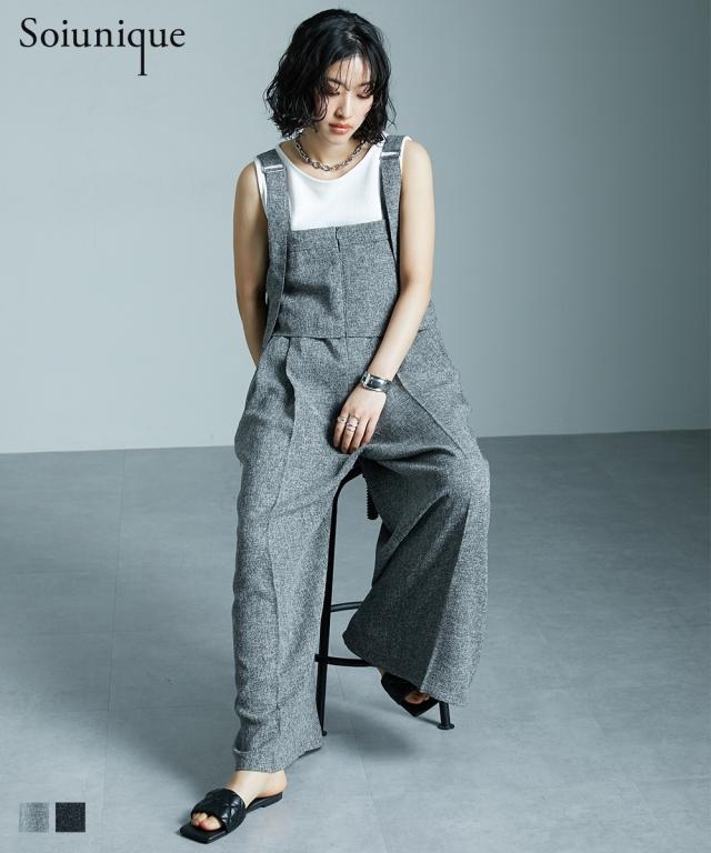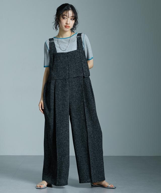 サマーツイード素材ドレープサロペットワイドパンツ [Soiunique]