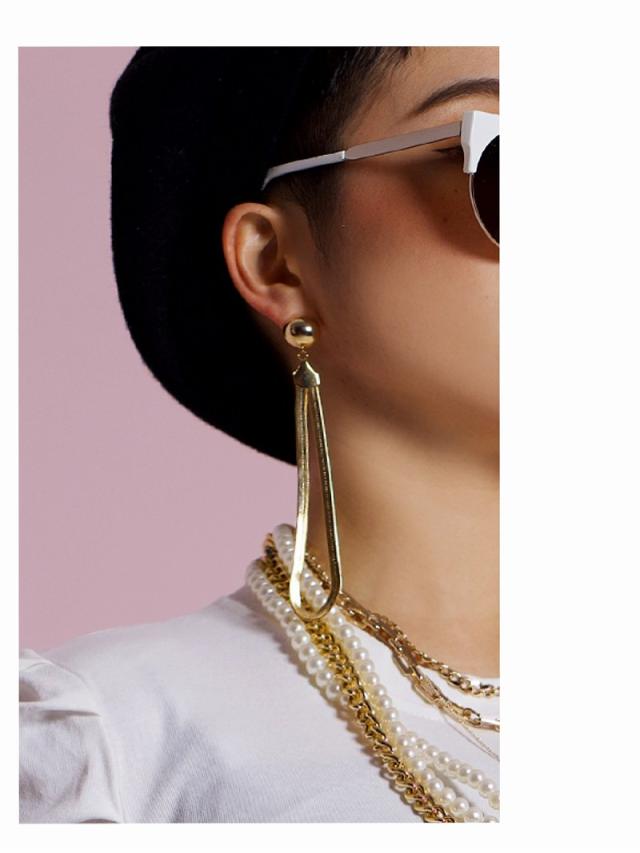 ☆大ぶりのドロップフープピアスは、どんなコーデやスタイルにもぴったり。
