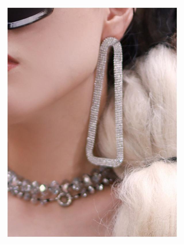 ☆キラキラ輝くラインストーンがゴージャス感たっぷりで、インパクト大なチェーンピアス。