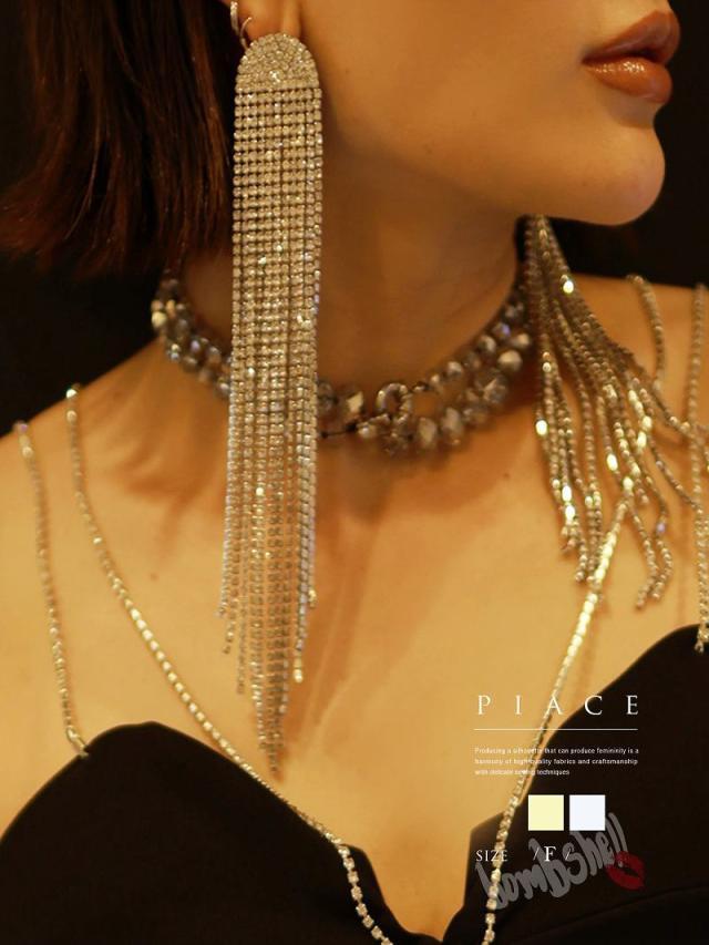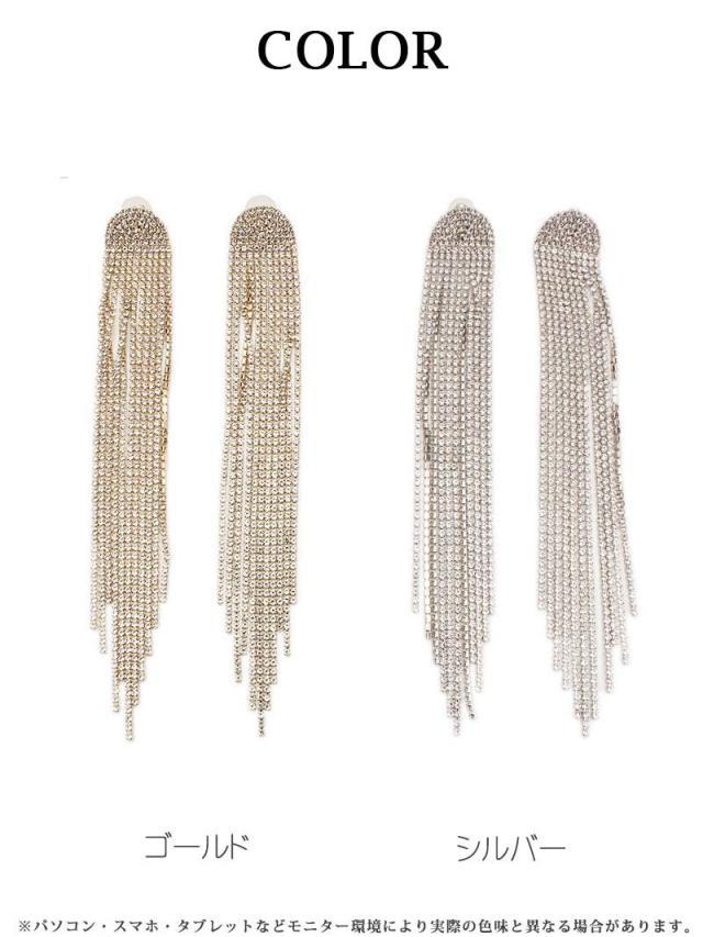 ☆ギラギラ輝き¥くラインストーンタイプのフリンジピアスは、大人ゴージャス感溢れるビッグピアス。