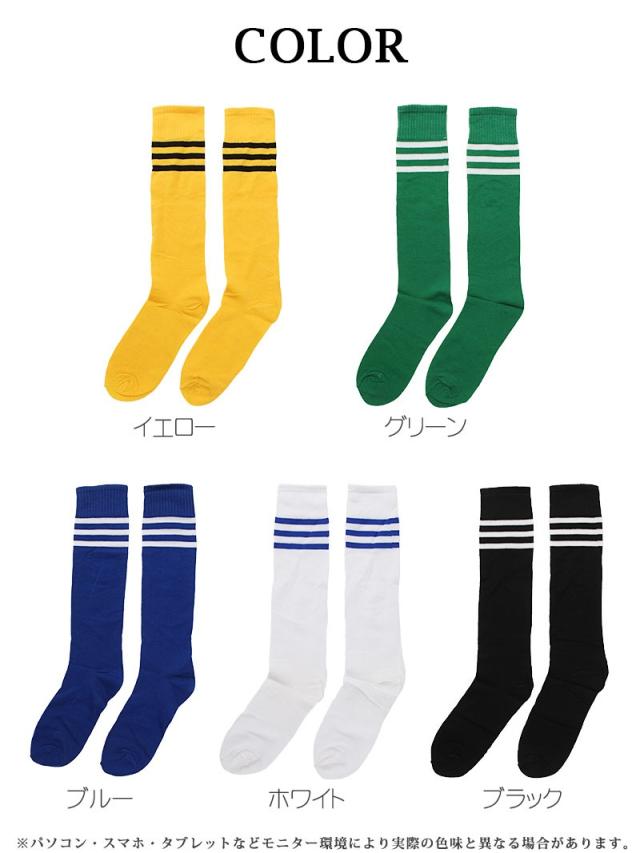 ☆カラバリ豊富な5色展開なので定番のブラックやホワイト、コーデのアクセントになるイエローやグリーンやブルーと色違いで欲しくなるスリーラインソックス。