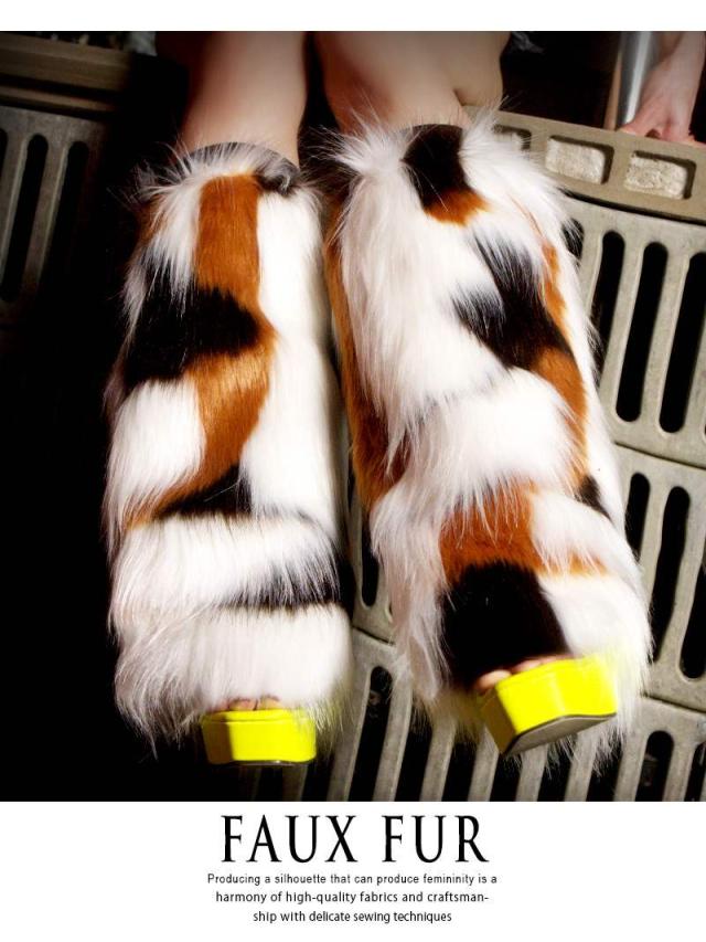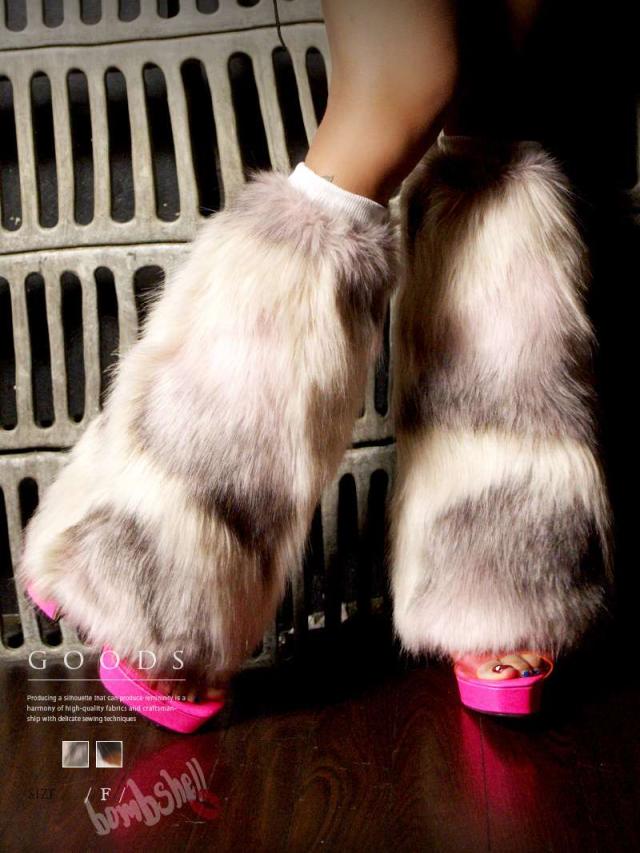 グッズ Bbomb アニマル柄 ふわふわ フェイクファ- レッグウォ-マ-
