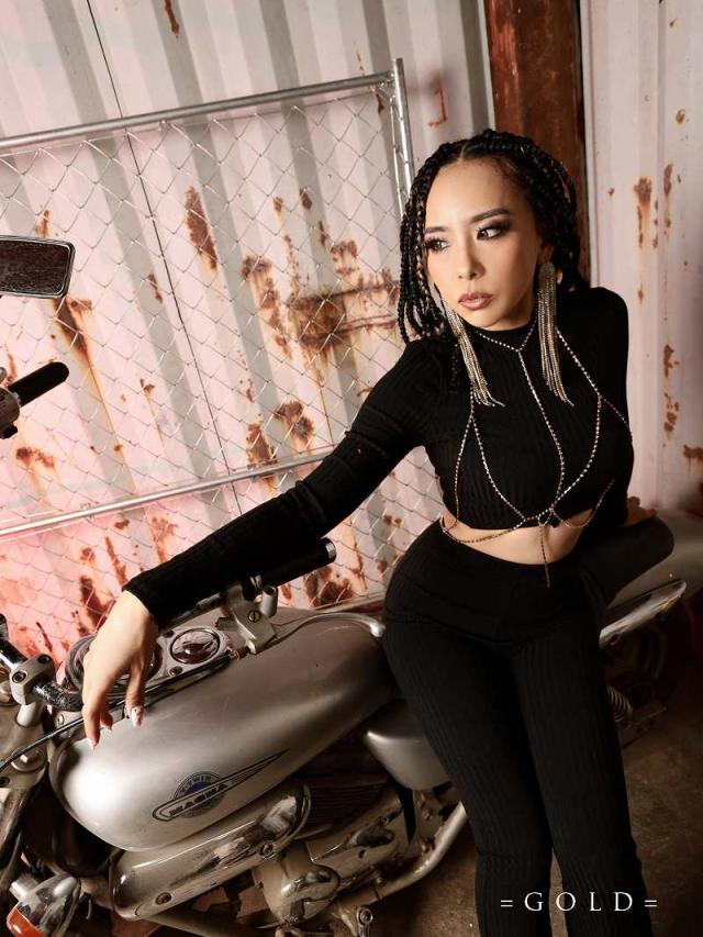 ☆キラキラと動くたびに揺れるボンテージライクなハーネスは目立ち度絶大!
