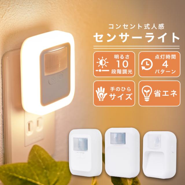 LED センサーライト コンセント 昼光色 電球色 昼白色 LEDライト ライト 照明 灯り 省エネ 間接照明 夜間照明 室内 コンセント センサー 人感センサーライト 人感センサー 明暗センサー 10段階明るさ調節 点灯時間設定 省エネ おしゃれ フットライト トイレ 玄関 廊下 階段 寝室 洗面所 防犯 防災 子供 敬老の日 母の日 父の日 ギフト 誕生日 プレゼント 父の日ギフト 誕生日プレゼント 結婚祝い 福袋 メンズ レディース 男性 女性 あす楽 人気 おすすめ 送料無料