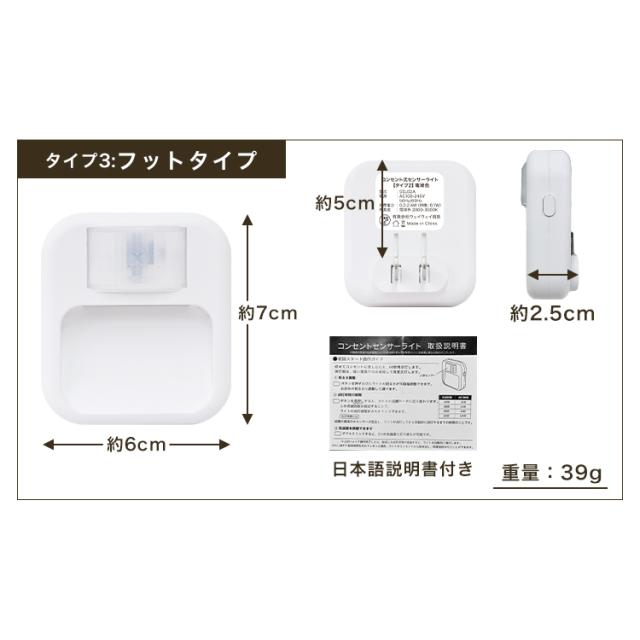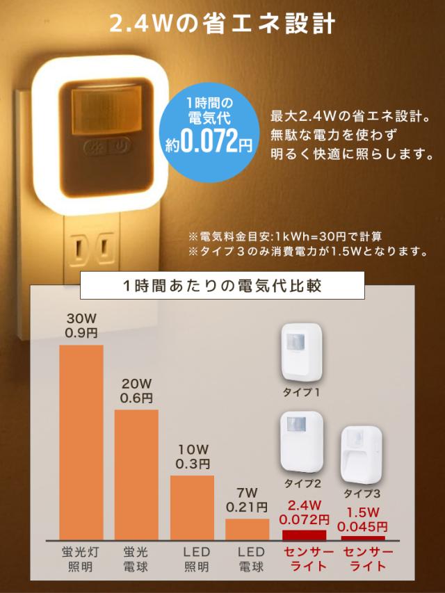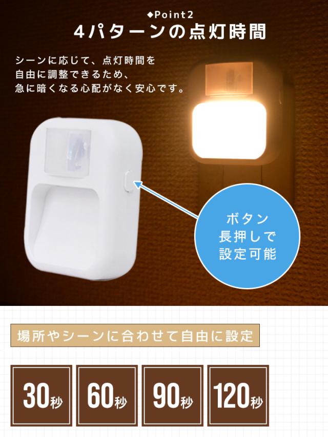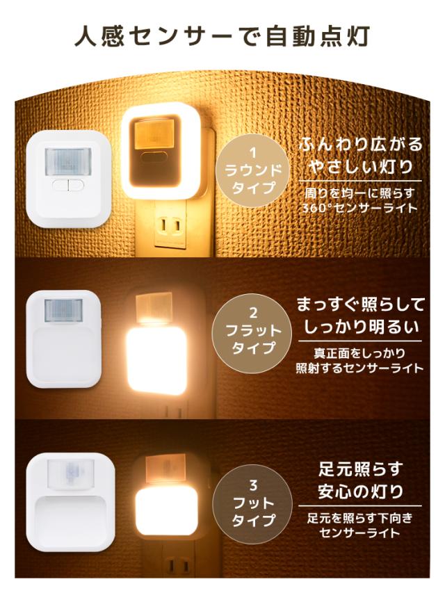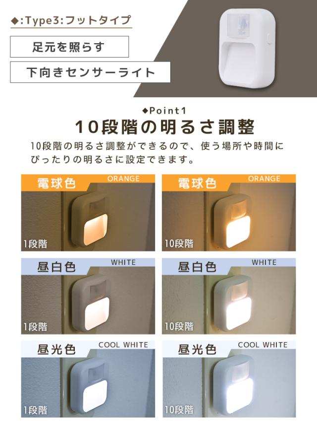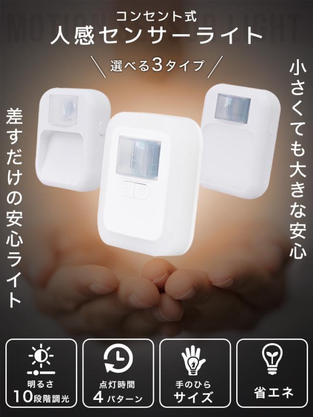 ≪新商品≫ LED センサーライト コンセント 室内 選べる3タイプ 人感センサーライト 人感センサー 明暗センサー 10段階明るさ調節 点灯時間設定 省エネ おしゃれ フットライト 玄関 廊下 寝室 洗面所 送料無料