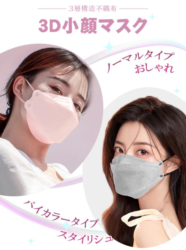 マスク 小顔3Dマスク 立体 30枚入 息がしやすい バイカラー 不織布マスク くすみカラー パステルカラー 小さめ 3層 口紅が付きにくい 秋冬 蒸れない