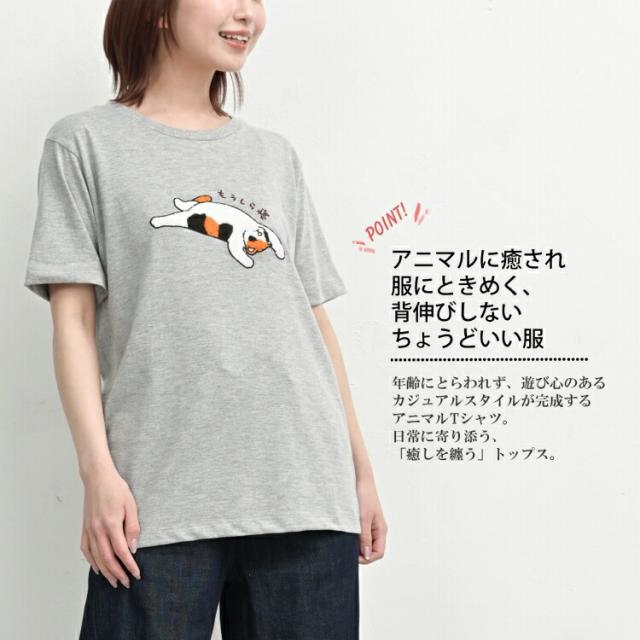 【メール便対応】日常に寄り添うアニマルに癒される刺繍Tシャツ。 XXXL 2XL 3XL 半袖トップス 犬猫 ゆったりサイズ ぽっちゃり女子 プラスサイズ 大きいサイズ レディース 半袖トップス 半袖カットソー 半袖Tシャツ アニマルTシャツ 刺繍Tシャツ ユニークアニマルデザイン 刺繍アート もうしら寝 つかれた寝 三毛猫 パグ エキゾチックショートヘア 半袖 Uネック クルーネック ラウンドネック 春服 夏服 秋服 春物 夏物 秋物 春トップス 夏トップス 秋トップス 春用Tシャツ 夏用Tシャツ 春夏 綿混 体型カバー ゆったり 大きめ 大人 カジュアル フェミニン ナチュラル ガーリー 大人可愛い きれいめ かわいい 着こなし おしゃれ 定番 春コーデ 夏コーデ 秋コーデ デイリーファッション 大きめ 女性 婦人用 ミセス 30代 40代 50代 2025 夏新作 春 夏 秋 灰色 紺 M LL 3L 4L 9号 13号 15号 17号 clf-ssa-tp0523