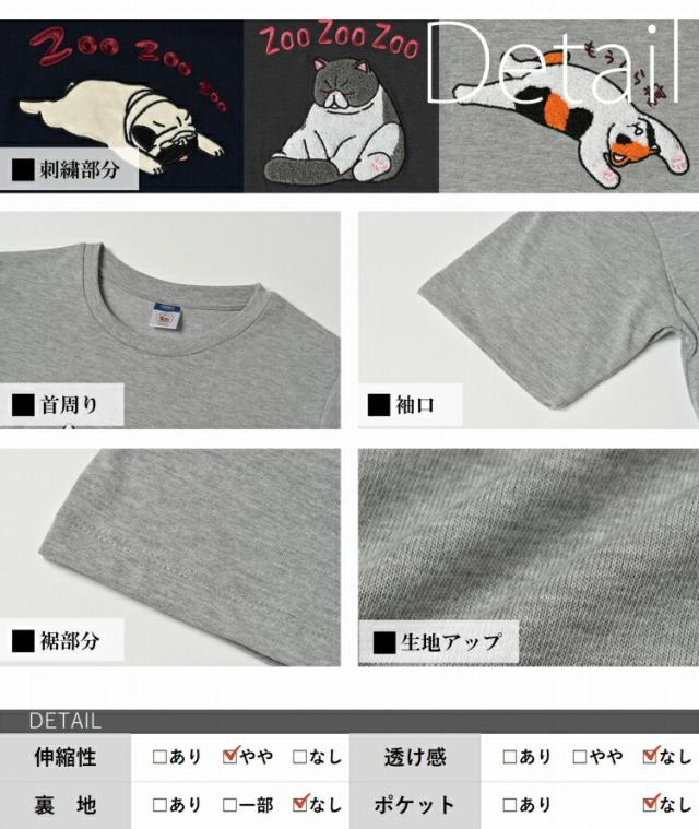 日常に寄り添う アニマルに癒される刺繍Tシャツ。 3タイプの刺繍デザイン ・つかれた寝パグ ・ひまな寝ネコ ・もうしら寝ネコ オトナになってもかわいいを楽しめる カジュアルアイテムです。 |