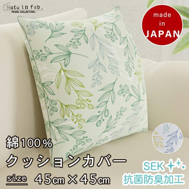 クッションカバー 綿100% 日本製 45 45 おしゃれ リーフ 北欧 カラー グリーン グレー 全開ファスナー 45×45cm 送料無料 クッション カバー SEK SEK抗菌防臭 抗菌 防臭 保湿 ブランチ