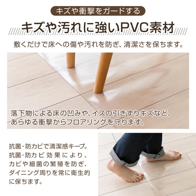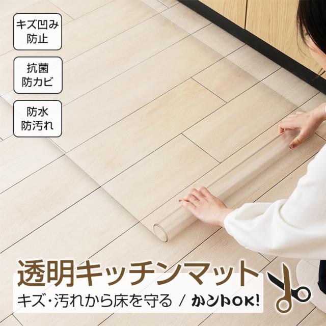 新生活 キッチンマット 拭ける 透明 クリア おしゃれ 180×240 透明キッチンマット 撥水 洗える 台所マット PVC 厚さ1.5mm in036-180