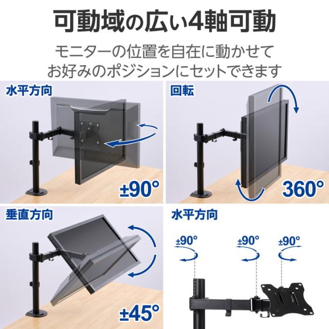 エレコム モニターアーム ディスプレイアーム シングルアーム ロング ブラック ┃DPA-SN01BK