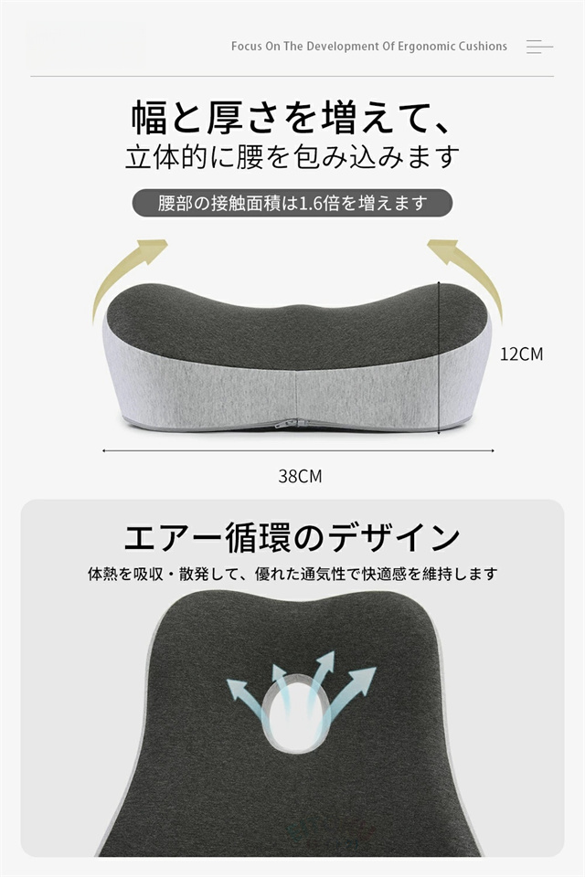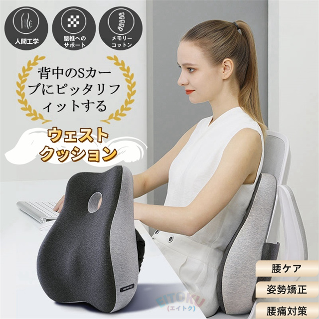 腰枕 腰痛クッション 背もたれクッション ウェストクッション 健康クッション 人間工学 腰サポート 低反発 通気性 腰痛対策 姿勢矯正 猫背 腰ケア