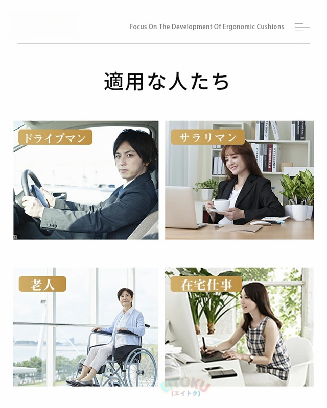 長時間座りに仕事する人に適合します、車中やオフィス、自宅などいろいろな用途、場所でご使用できます。誕生日、祝日のプレゼントとしてもお勧めです。