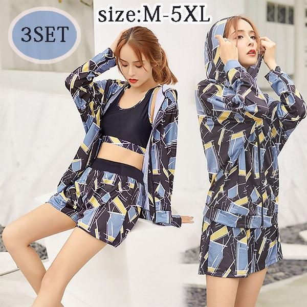 体型カバー 上下セット 3点セット 水着 ぽっちゃり ラッシュガード レディース 大きいサイズ 着やせ ぽっちゃり 女性 スポーツ 海水浴 温泉 韓国風