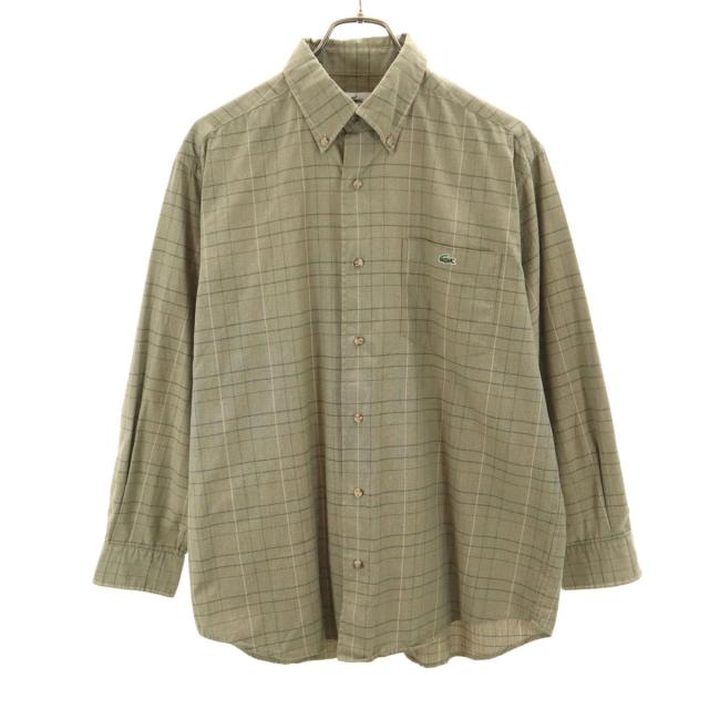 ラコステ 日本製 チェック柄 長袖 ボタンダウンシャツ 3 カーキ系 LACOSTE メンズ