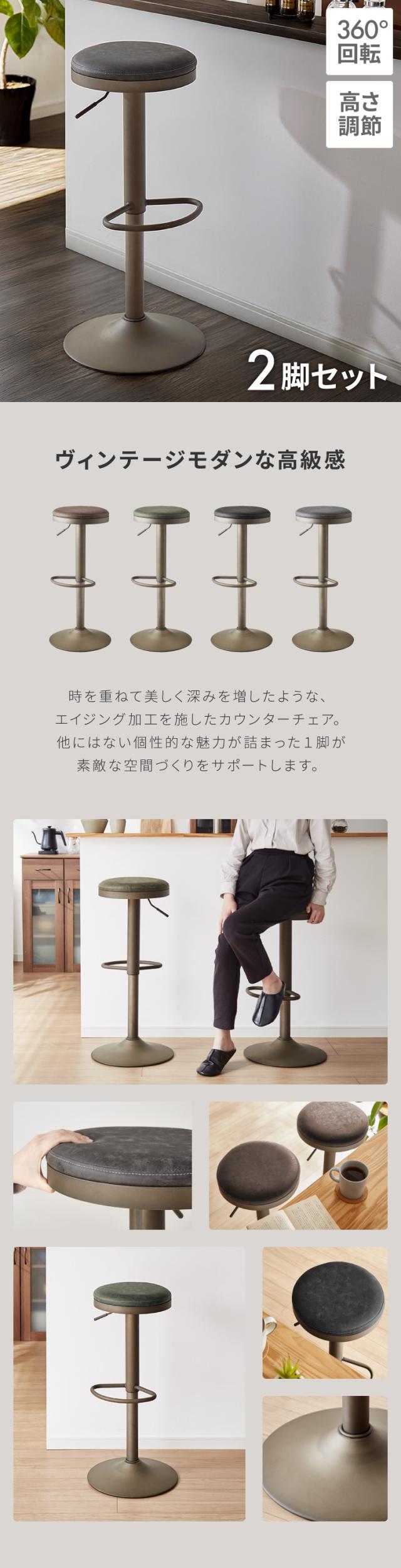 ヴィンテージモダン昇降式カウンターチェア/2脚セット
