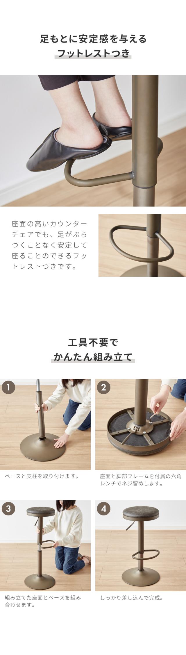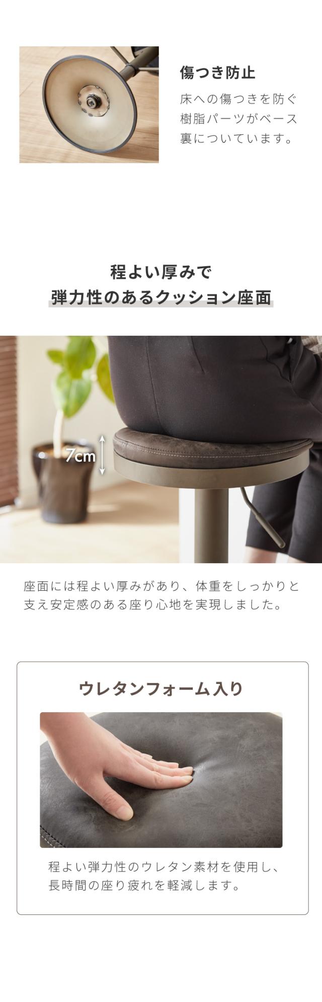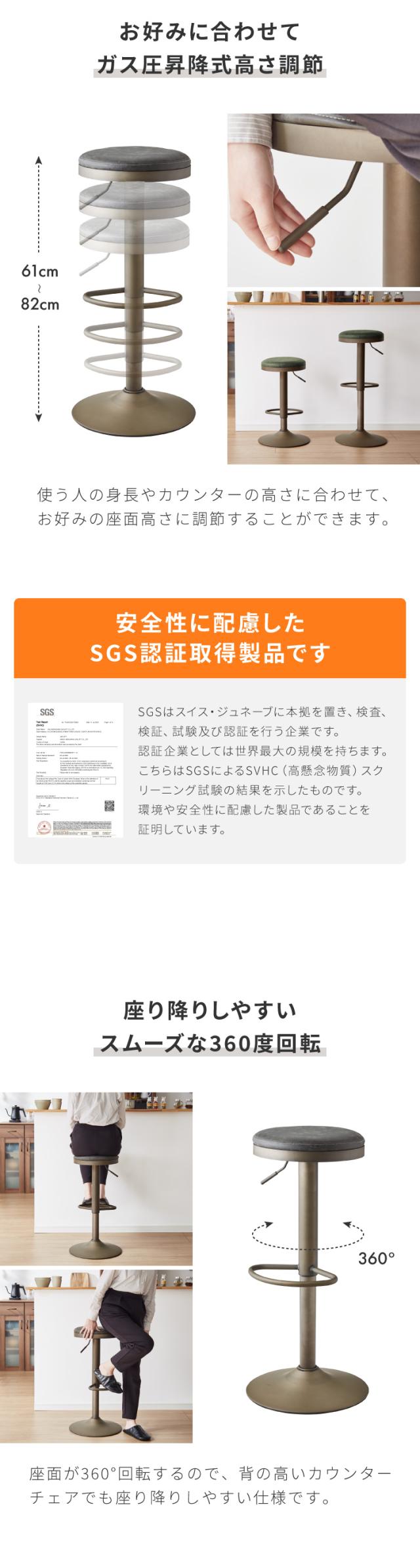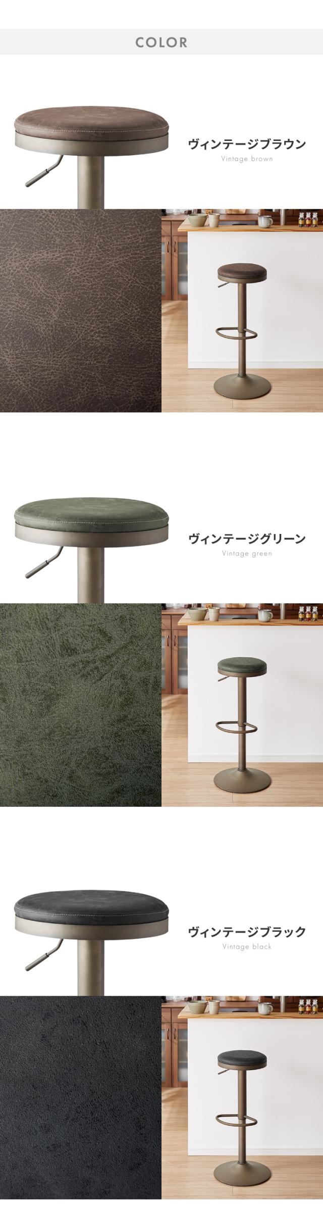 カウンターチェア、ガス圧式、回転式、ガス圧昇降、ガス圧昇降式、高さ調整可能、キッチンスツール、カフェチェア、ヴィンテージ、レザー、レトロ、モダン、椅子、イス、チェア、スツール、ミッドセンチュリー、韓国、北欧、オフィス、店舗、カフェ、ダイニング、高級感、ブラウン、グリーン、ブラック、グレー、カフェスタイル、カフェテイスト、西海岸、パーソナルチェア